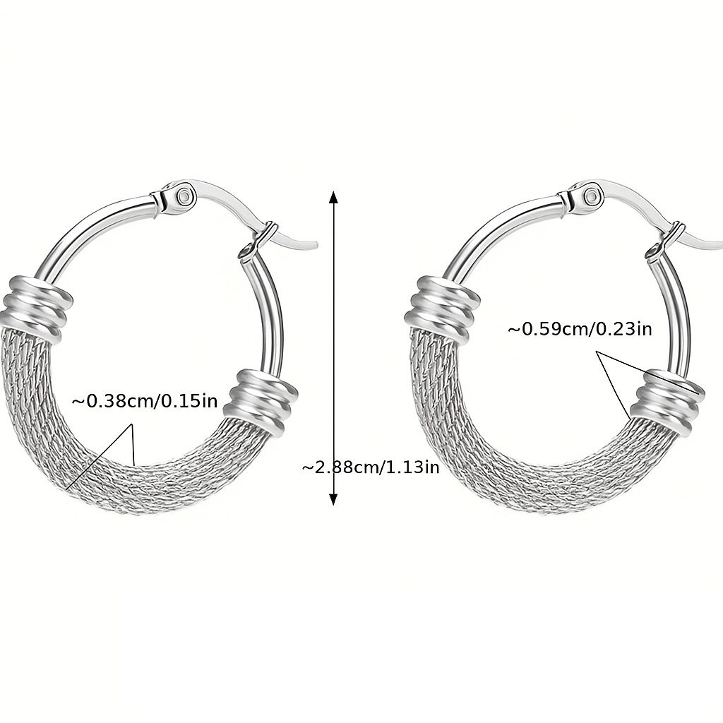 Aros argolla con detalle de tramas finas en plateado.