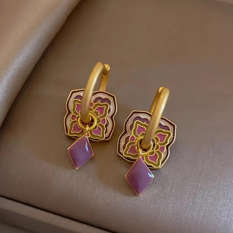 Los rombos tienen doble cara: lila de un lado y blanco del otro, lo que te permite usarlos los dos iguales o jugar con los contrastes llevando uno de cada color.