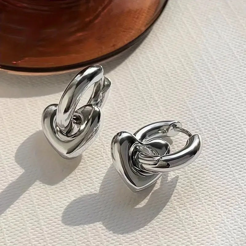 Estas caravanas de corazón plateado destacan por su diseño bold y brillante, ideal para elevar cualquier look con un aire sofisticado pero actual.