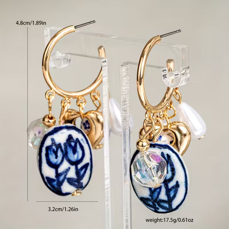 Cerámica pintada a mano, perlita blanca, corazón dorado y un toque de cristal.