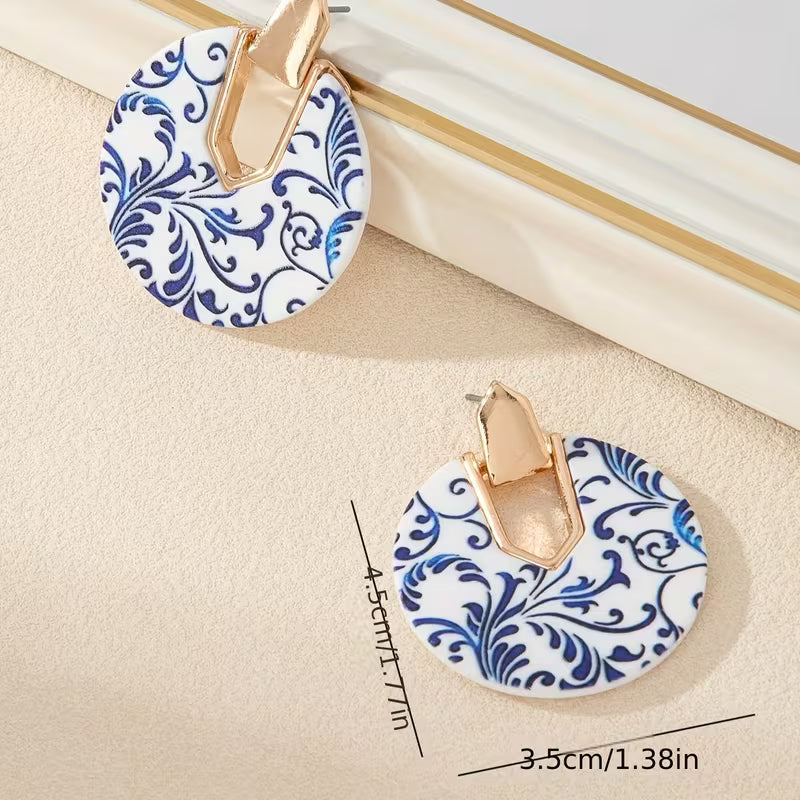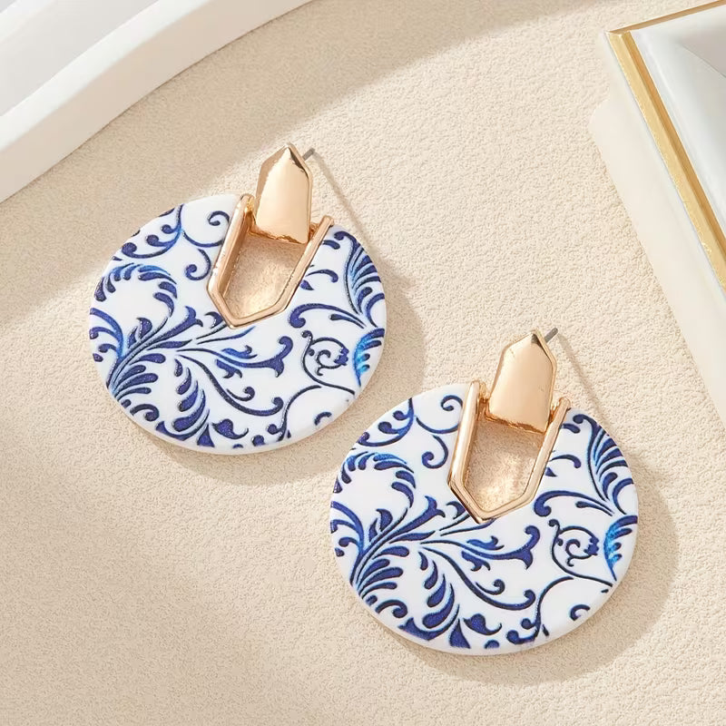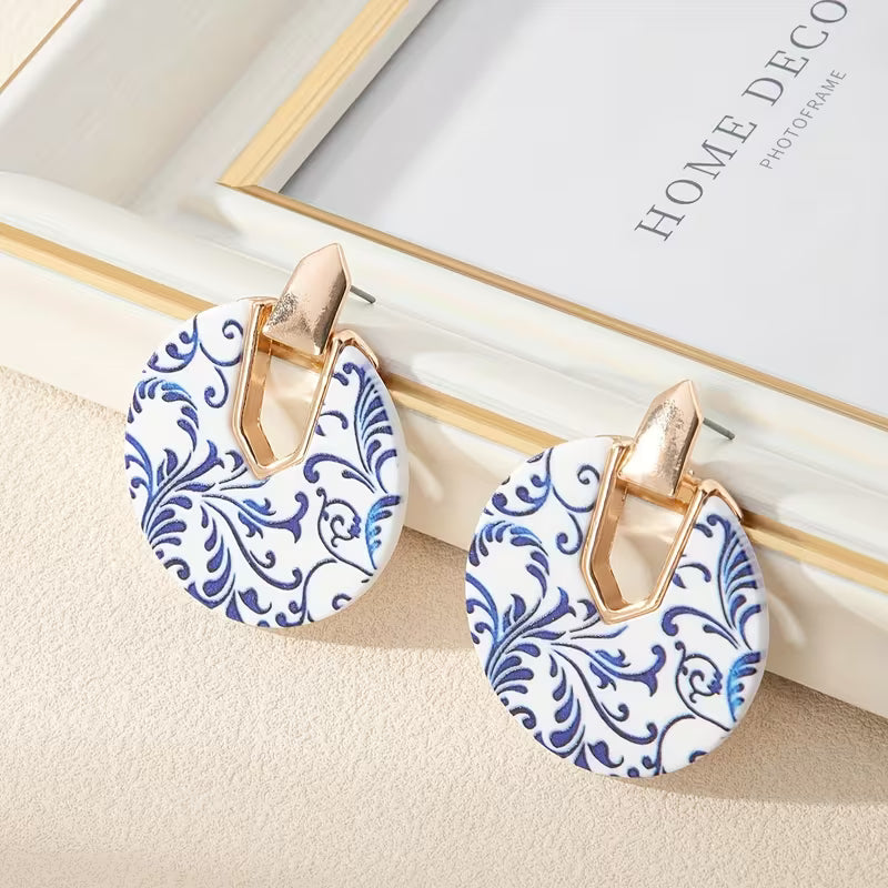 Las SINTRA combinan formas circulares con un delicado estampado azul sobre base blanca, creando un equilibrio perfecto entre lo clásico y lo moderno. El herraje dorado suma un toque sofisticado que realza cualquier look.
