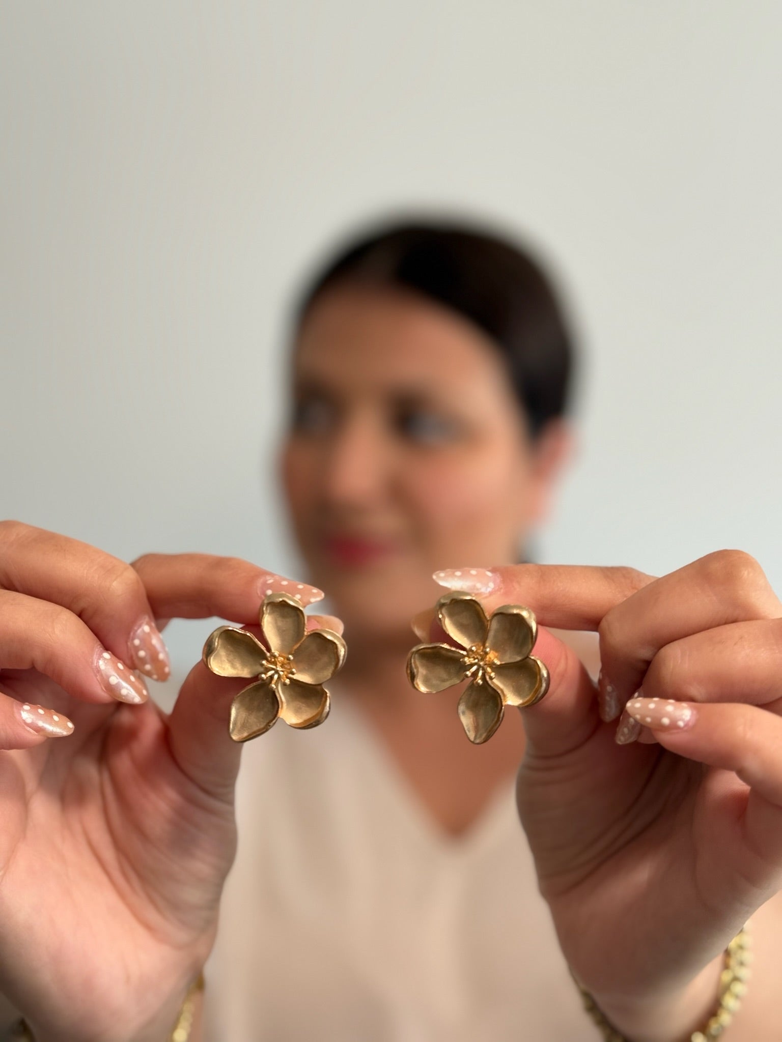 Flores doradas de gran tamaño, con un diseño delicado que aporta ese brillo único que nunca pasa desapercibido.