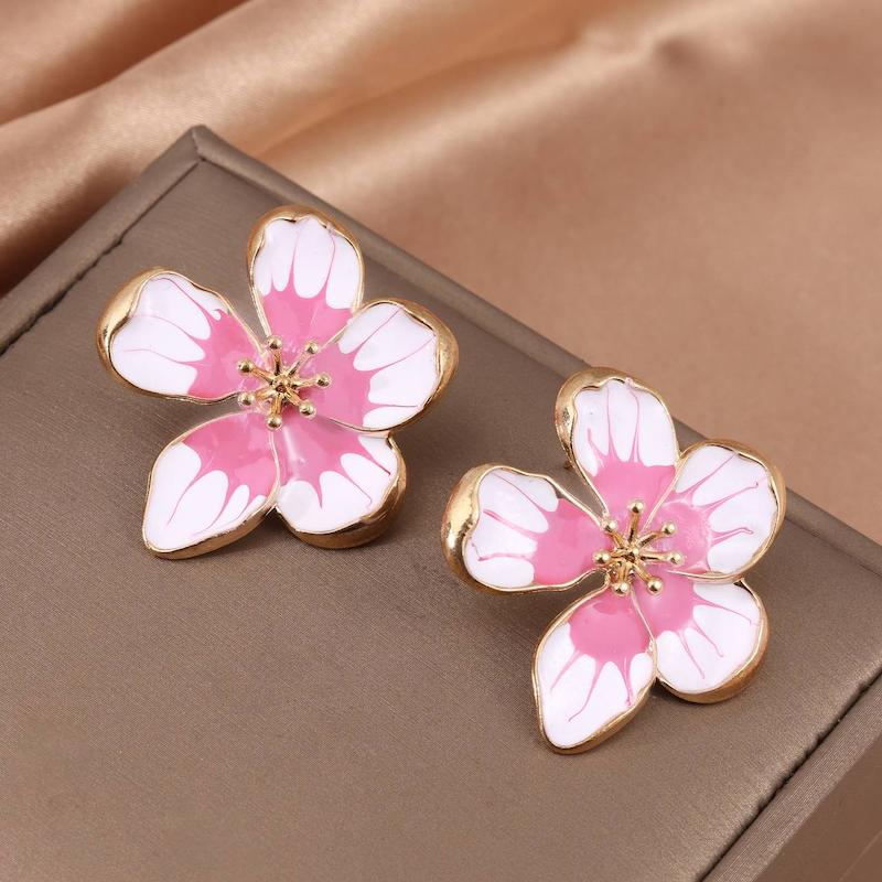 Las Velur Rosa son pura vibra primaveral con su forma de flor esmaltada en tonos rosados y detalles dorados que realzan cada pétalo.