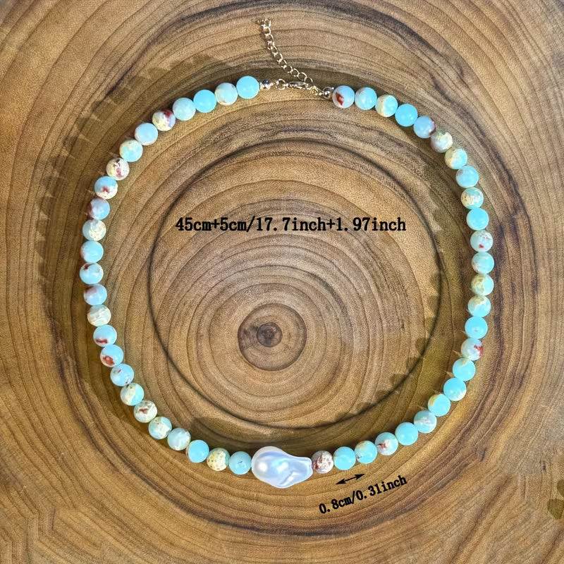 Un viaje de color en cada cuenta: tonos celestes, tierras y una perla natural como protagonista.