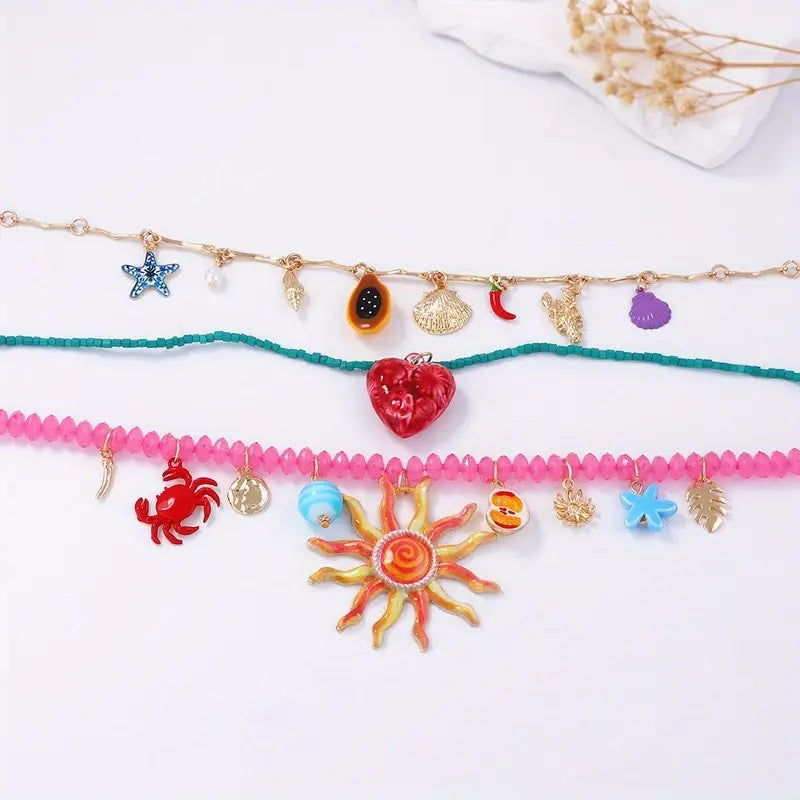 Con dijes inspirados en el verano y tonos intensos, es perfecto para quienes aman destacar y combinar según el momento.
